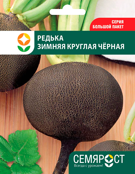 Среднеспелый сорт. Двулетнее лекарственное растение из семейства крестоцветных. Корнеплод формируется в первый год, округлый черного цвета, массой 250 - 500 г, мякоть белая, нежная, очень сочная.В почву погружен полностью. Выдергивается хорошо. Отличается высокой лежкостью в период зимнего хранения.